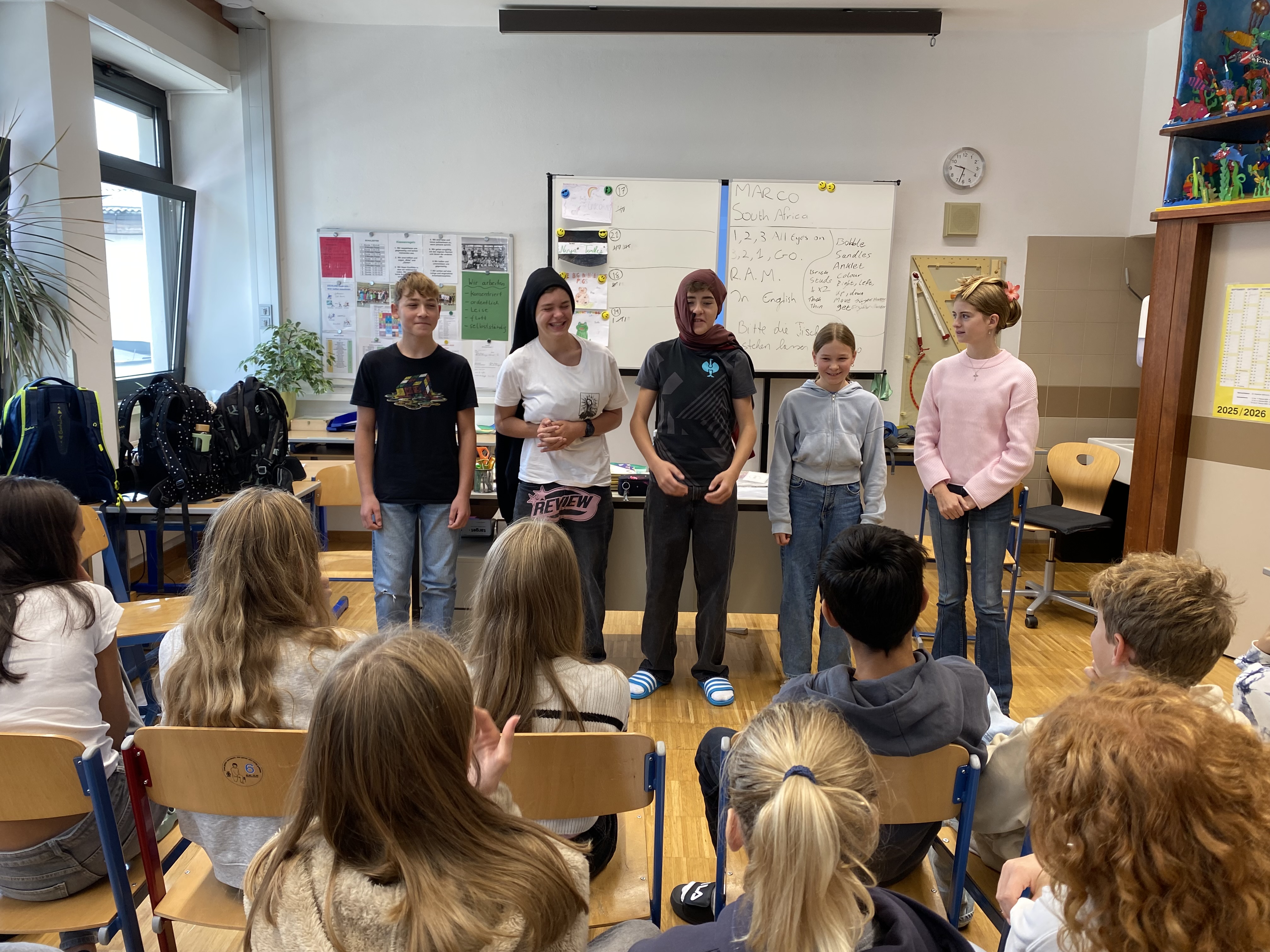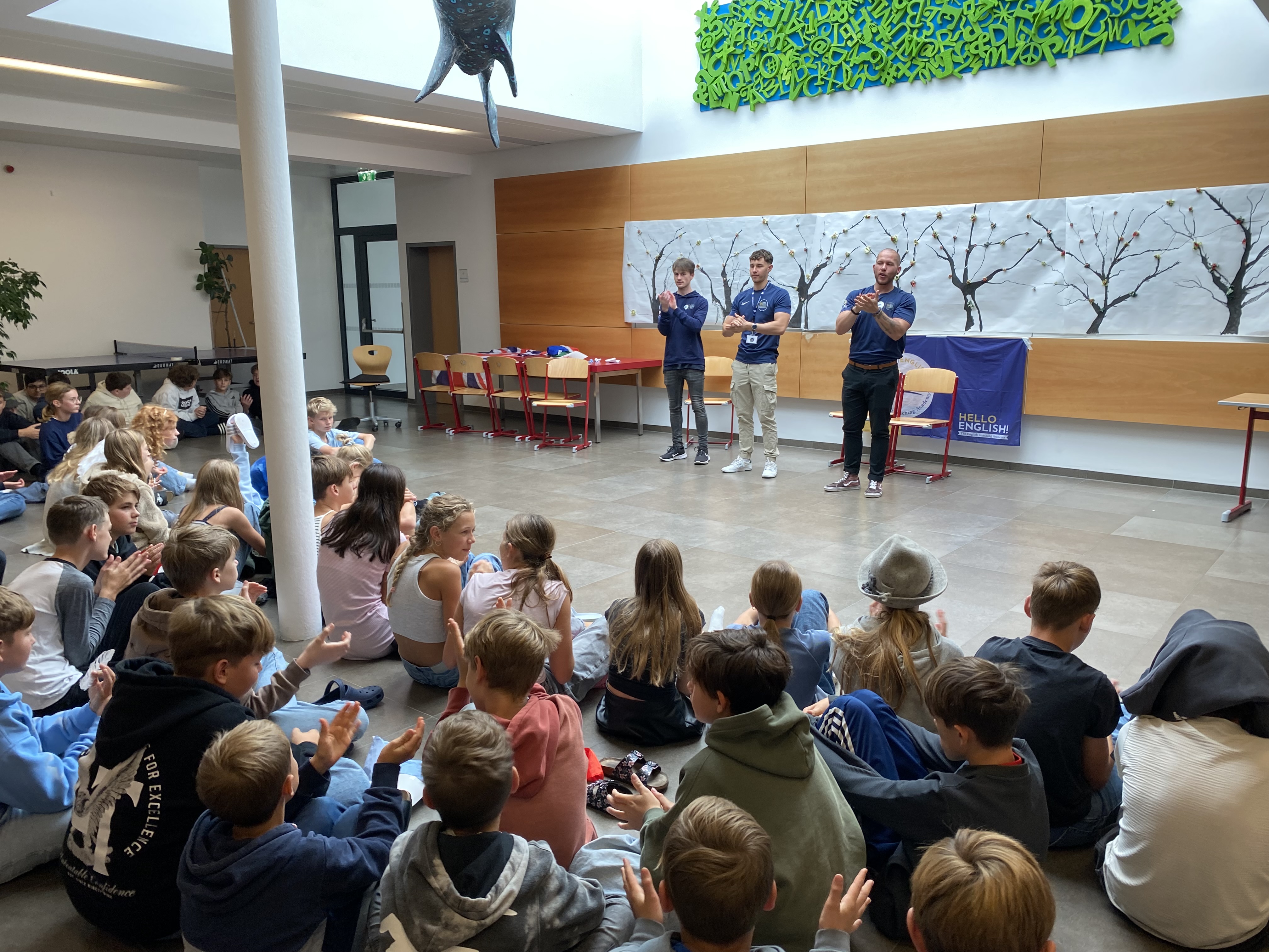 Gleich in der vierten Schulwoche starteten die 3. Klassen mit einem tollen Englischprojekt. Ziel dieser Intensivsprachwoche war es, die ganze Woche nur Englisch zu sprechen und so die eigene Sprachkompetenz zu erweitern. Die drei Muttersprachler von HELLO ENGLISH boten abwechslungsreiche language games, Rätsel und auch eine Bewegungseinheit mit englischen Spielen an. Die Schüler und Schülerinnen studierten gemeinsam in Gruppen verschiedene Szenen ein, die am letzten Tag vor den Klassenkameraden und Lehrern präsentiert wurden. Dabei zeigten die Kinder großes Engagement und hatten sichtlich viel Freude.