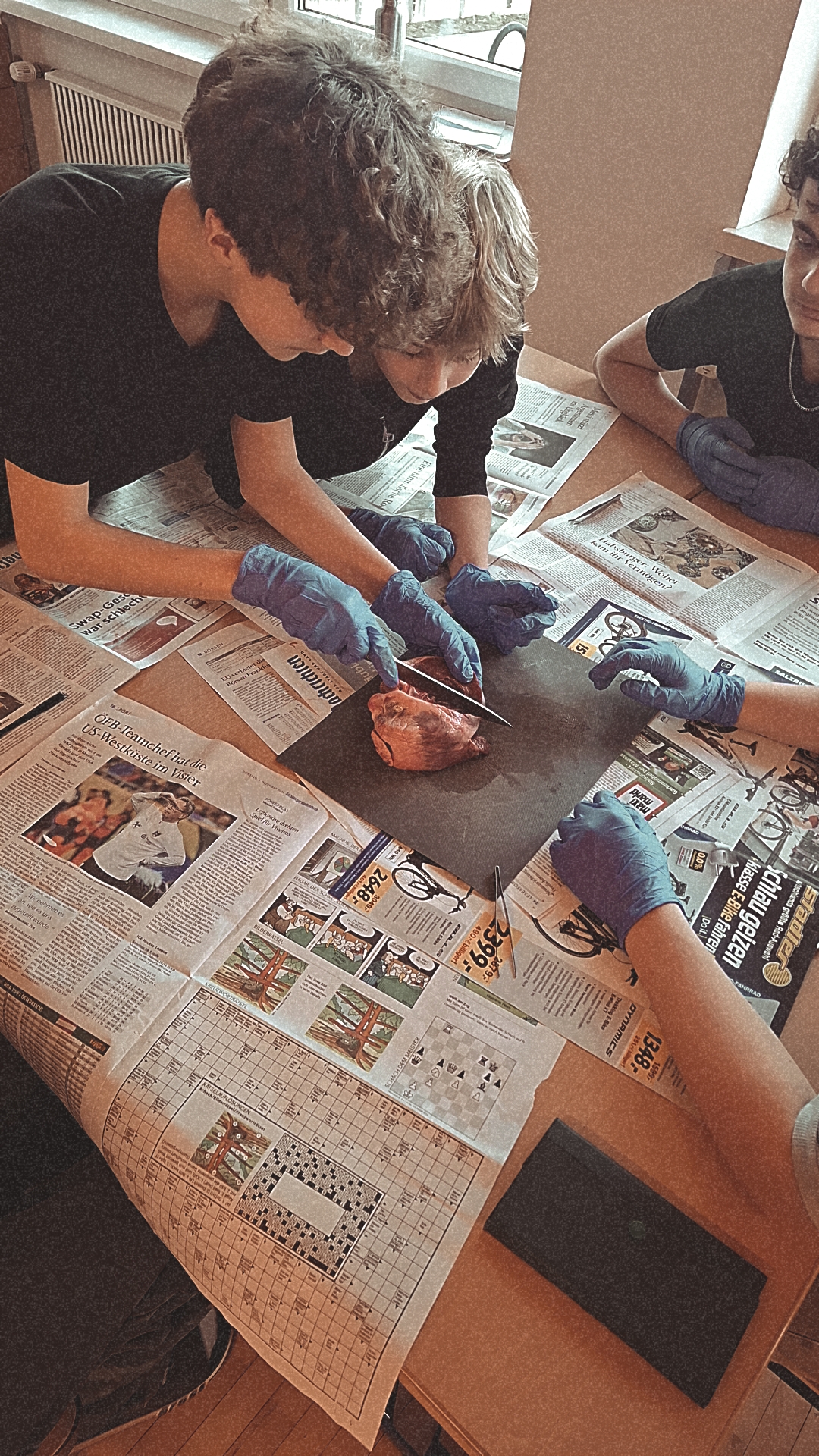 Im Zuge des Biologieunterrichts durften die 4A und 4C Klasse zum Thema "Herz- und Blutkreislauf" Herzen sezieren. Das Sezieren eines Herzens hilft den Schülerinnen und Schülern, dieses einzigartige Organ besser begreifen zu können. Zur Verfügung standen Rinder- und Schweineherzen und die Kinder waren mit voller Begeisterung bei der Sache.